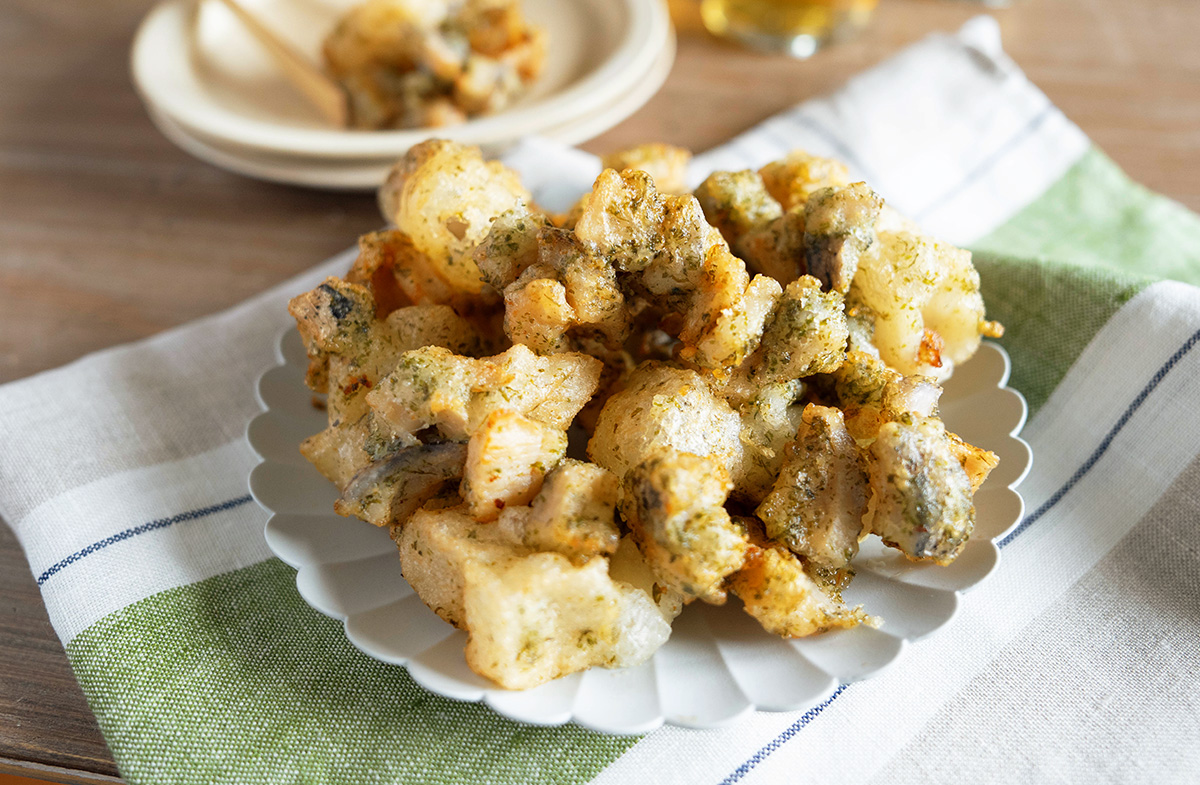 味付けは塩糀と青のりのみ。少ない材料で箸が止まらない一品に仕上がります。
