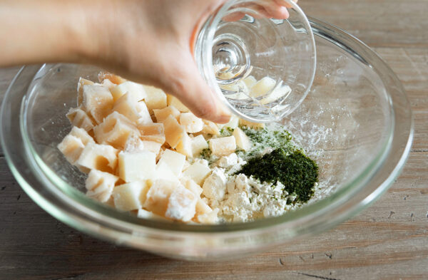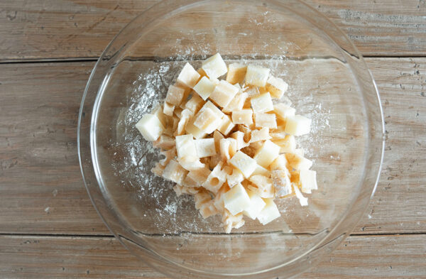 (1)をボウルに入れ、薄力粉(大さじ1)をまぶす。