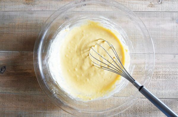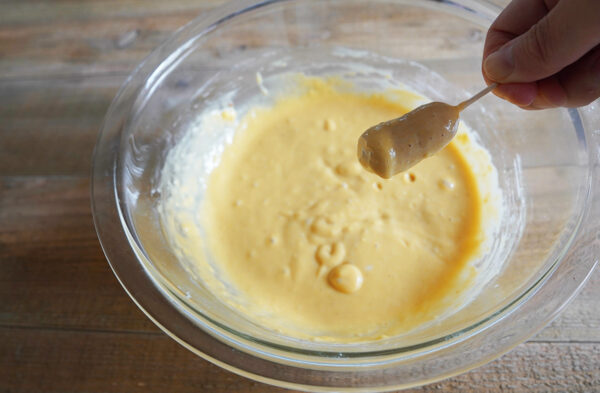 ボウルに卵を溶き、ホットケーキミックス、献立いろいろみそ、牛乳を加えて混ぜ合わせる。