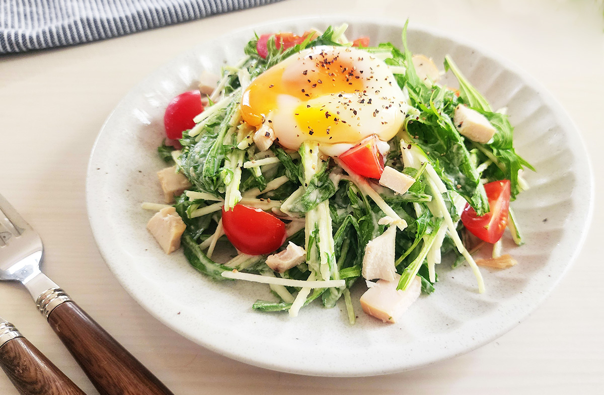 水菜の腸活シーザーサラダ (チーズなし!塩糀で作る秘伝のドレッシング)