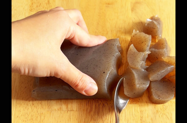 長ねぎは薄切りにする。こんにゃくはスプーンで一口大にする。