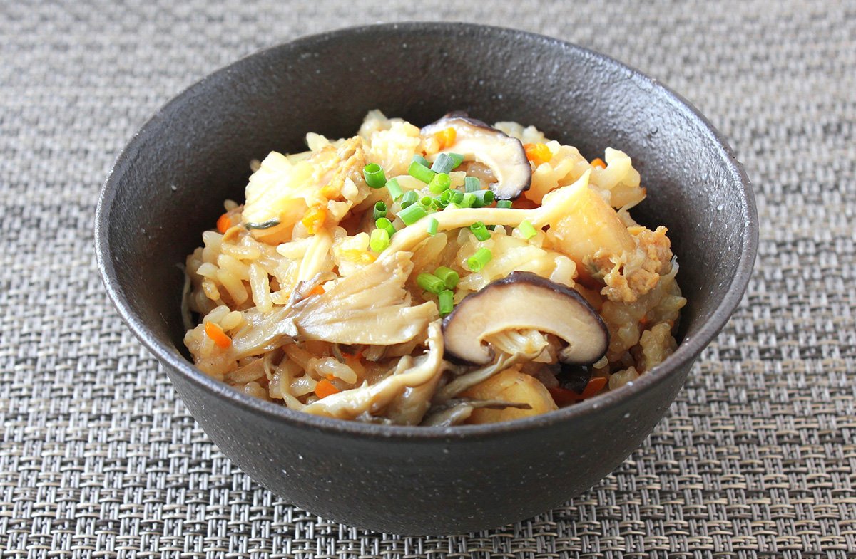 特選国産醤油で!ホタテときのこの炊き込みご飯