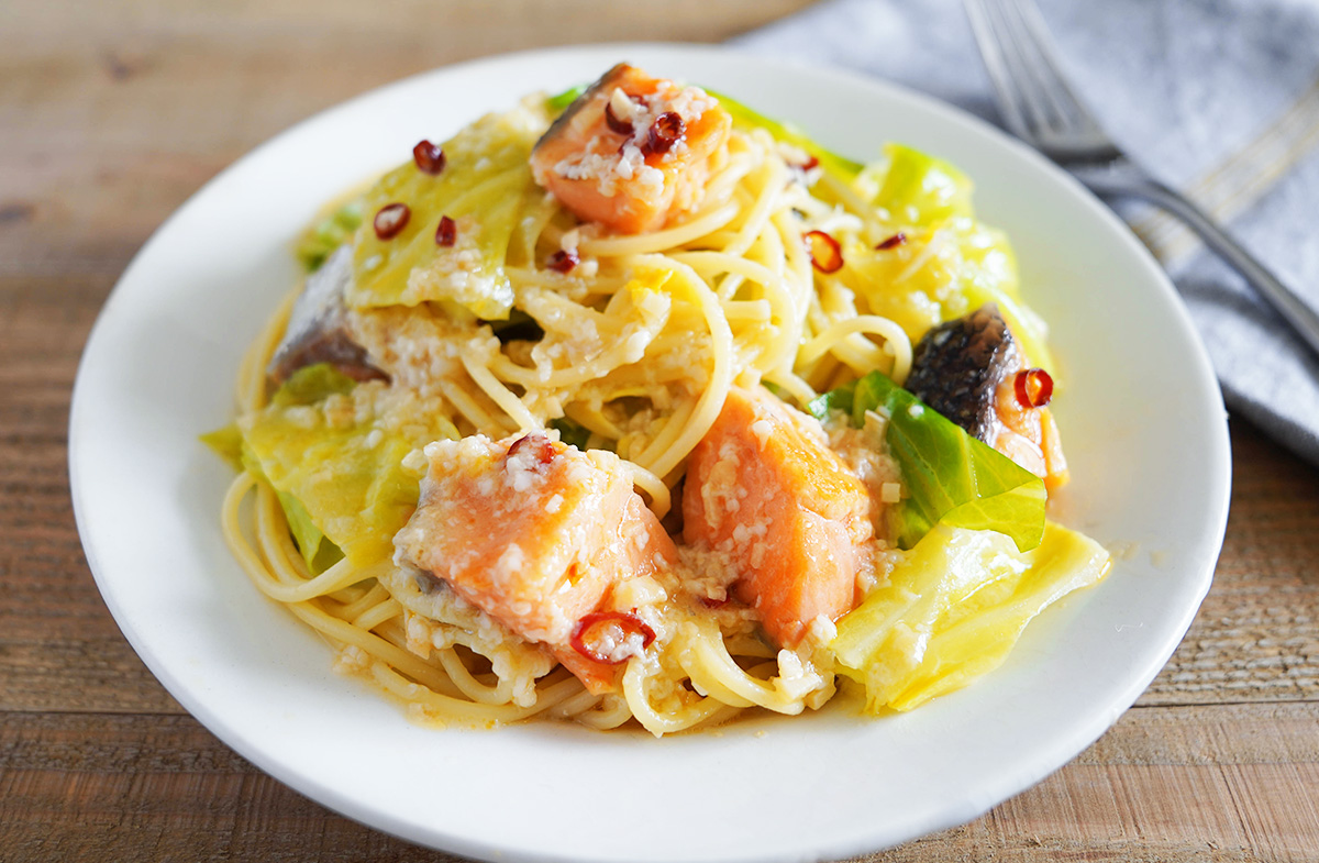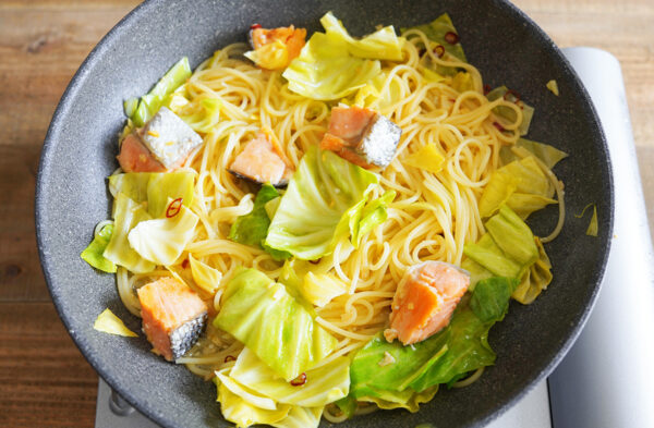 塩糀で旨い!鮭とキャベツのペペロンチーノ