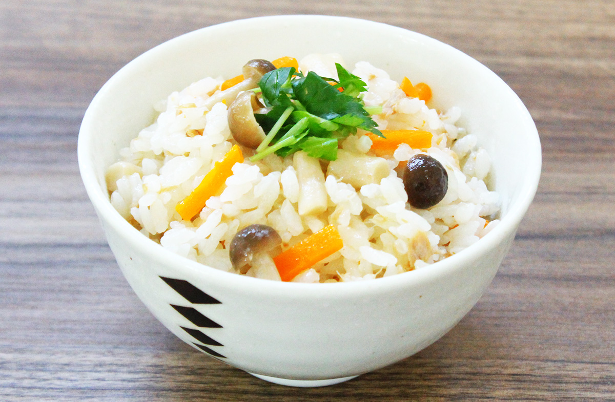京料亭白だし香る♪ツナ、しめじ、にんじんの炊き込みご飯