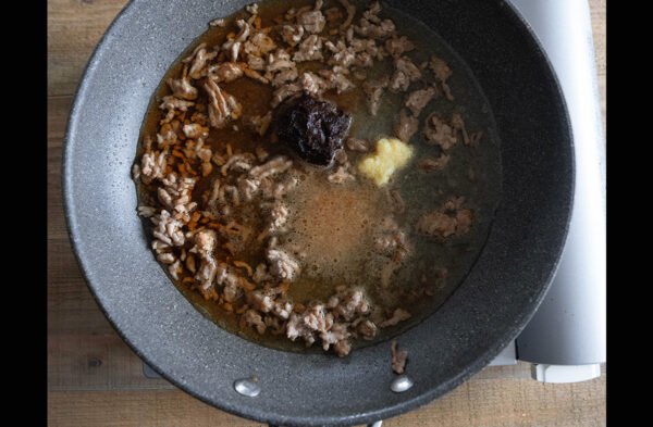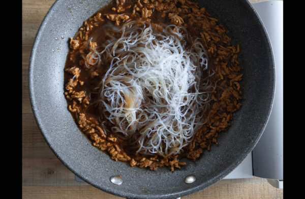 春雨を加え、煮汁が少なくなるまで中火で煮る。