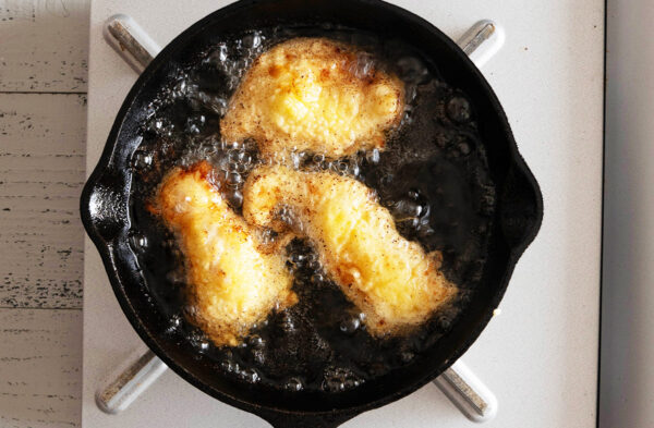 フライパンに深さ2cm程度の油を入れて熱し、両面を揚げ焼きにする。
