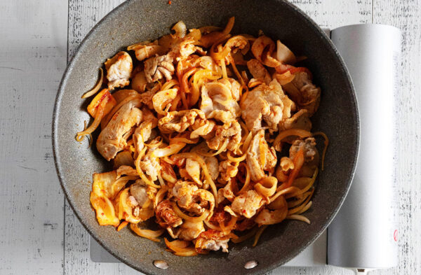 普段の豚キムチに「豆みそ(赤みそ、赤だしみそ)」を加えることでコクと旨味が格段にアップし、ご飯がガツンと進みます。焼きそばに加えてアレンジするのもおすすめです!