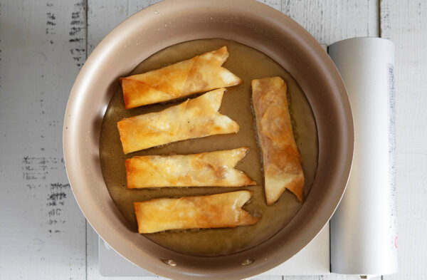 フライパンに深さ1cm程度の油を入れて熱し、(5)を揚げ焼きにしてバットで油を切る。