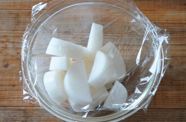 大根は先に電子レンジで加熱しておくと、味が染み込みやすくなります。