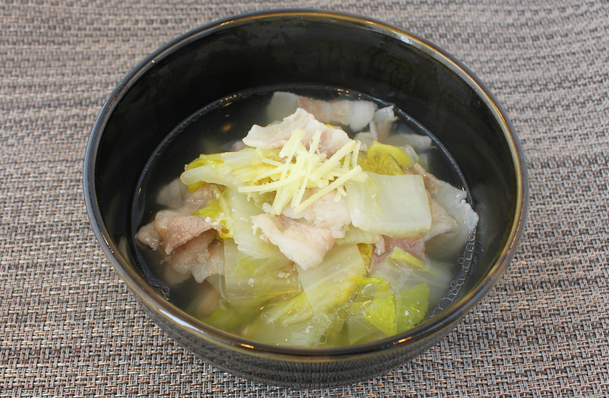 白菜と豚バラのしょうが糀スープ