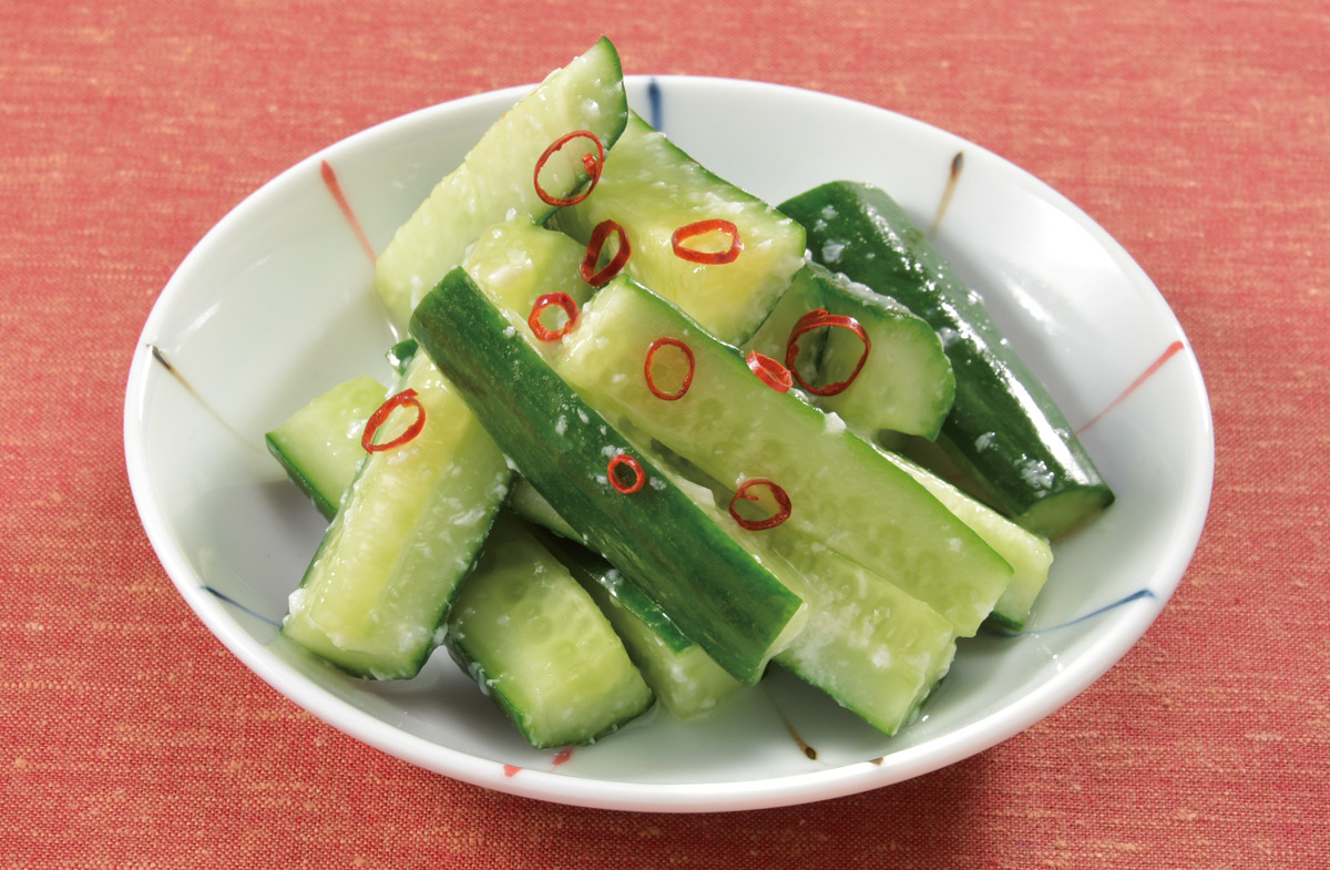 ポリ袋にきゅうり、塩糀、唐辛子を入れよくもみこみ、30分程漬ける。