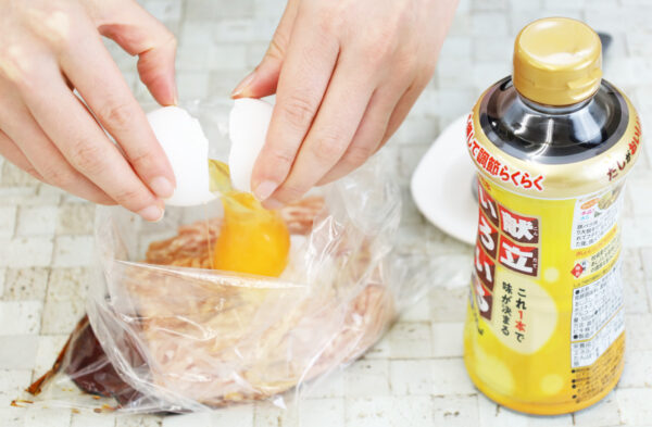 つくねのタネは、袋から絞り出しやすくなるように、やわらかめの配合です。