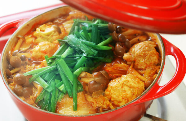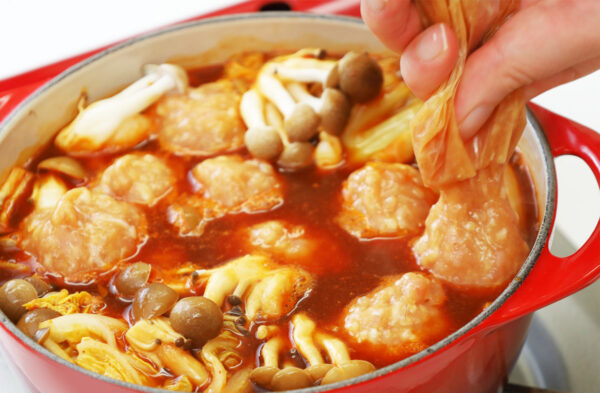 簡単鶏団子入り赤から鍋(鶏つくね、鶏つみれ)