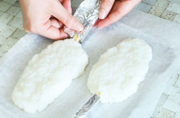 Aを混ぜてぬり、3分を目安に、こんがりとした焼き目がつくまで焼く。