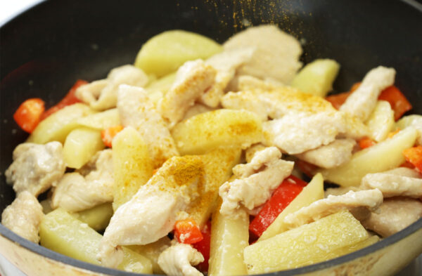 下味冷凍で!鶏ムネ肉とじゃがいものカレー炒め