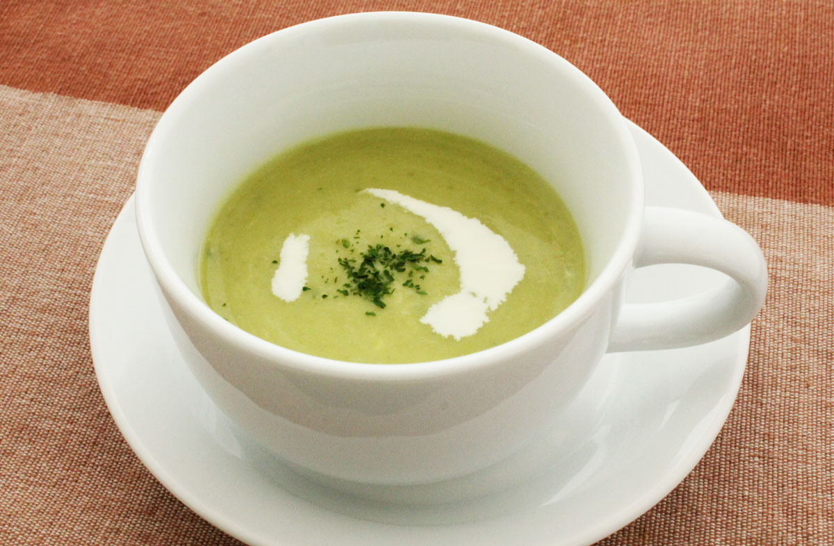 塩えんどうの緑色を活かした、彩りのきれいなポタージュ