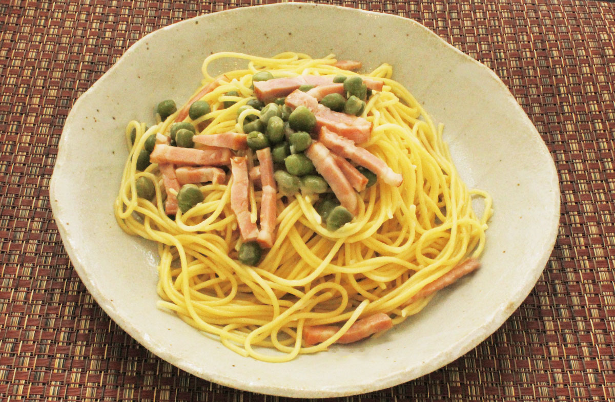 えんどう豆とベーコンのパスタ(スパゲッティ)