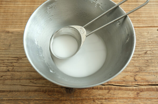 Bを混ぜながら少しずつ入れ、全体に混ぜ、2分ほど煮立ててとろみをつける。