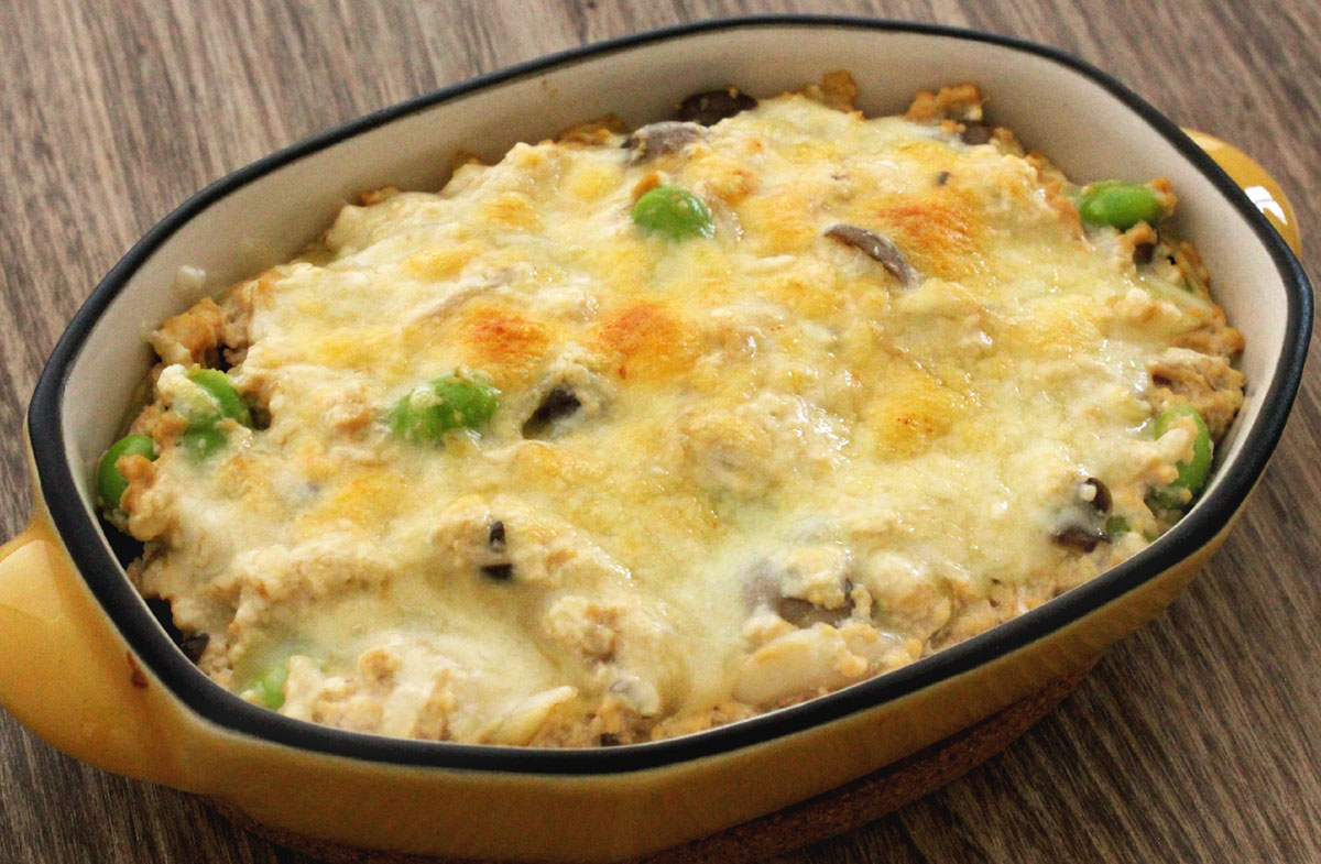 豆腐がまるでホワイトソースに!手軽に作れるグラタンです。献立つゆのだしの風味が味をまとめます。