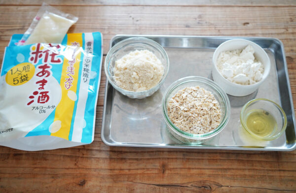積極的に摂りたいオートミールを使ったヘルシーなおやつです。砂糖を使わず糀あま酒で甘みをつけ、バターの代わりに米油やオリーブオイルを使います。