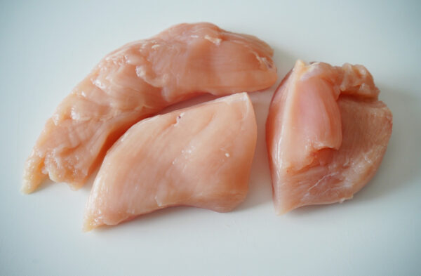 【下味冷凍】鶏胸肉は3つのブロックに分けてから、繊維を断ち切るように切る。