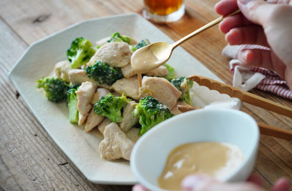 お好みでマヨつゆ(分量外:同じ量の献立つゆとマヨネーズを混ぜる)をかける。