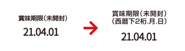 賞味期限表示のそばに「西暦下2桁.月.日」と順次表示していきます。