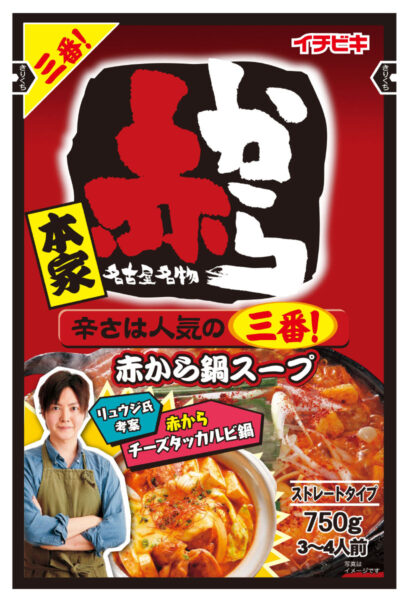 イチビキ株式会社(本社:愛知県名古屋市、代表取締役社長:中村光一郎)は、バズレシピでおなじみの料理研究家リュウジさんに『ストレート赤から鍋スープ三番』を使った「赤からチーズタッカルビ鍋」を考案していただきました。リュウジさんの公式Twitter、Instagram、YouTubeでコラボレシピが紹介されるタイミングに合わせて、10月15日(木)から11月15日(日)まで、プレゼントキャンペーンをTwitterにて実施します。本企画を通じて、赤から鍋スープの全国的な認知拡大を狙います。