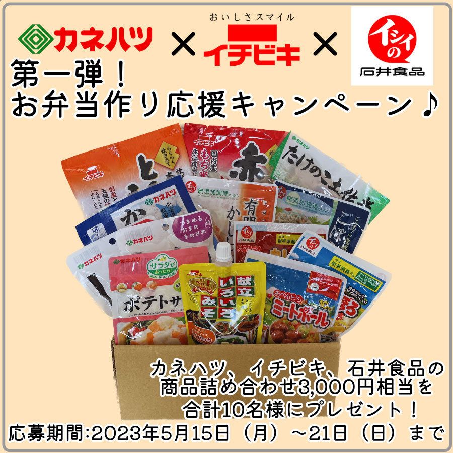 【応募期間終了】カネハツ食品×イチビキ×石井食品 3社コラボ企画 第1弾!Instagram限定 お弁当作り応援キャンペーン実施