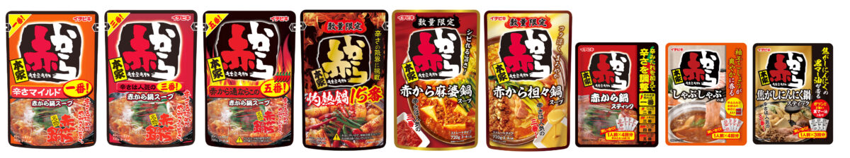 - 「赤から」の看板メニューである”赤から鍋“を家庭で楽しめるように2008年にストレート赤から鍋スープ三番を商品化して以降、様々はシリーズ商品が登場しています。