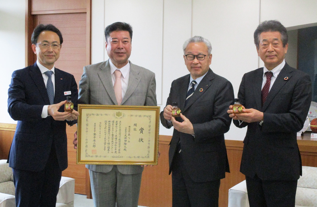 3月31日、当社社長 中村が、あつみの久保田社長、海みらい研究所の丸﨑様とともに豊橋市長を表敬訪問し、受賞を報告しました。
