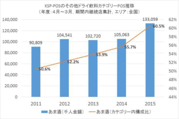 テレビなどであま酒の効果・効能が取り上げられ、あま酒市場は年々拡大傾向です。<図1>