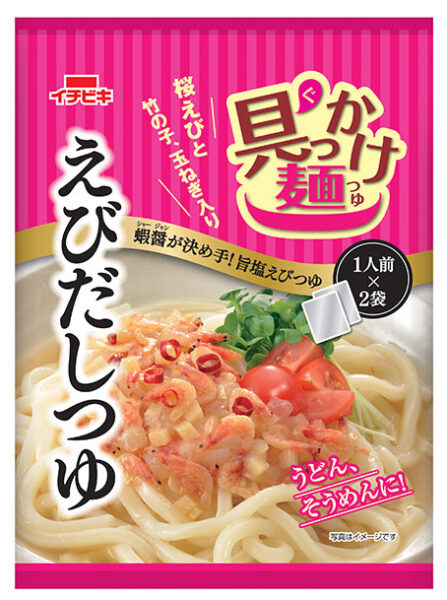 イチビキ株式会社は、高まる個食ニーズに対応し、個食タイプの具材入り麺つゆ「具(ぐ)っかけ麺つゆ」シリーズとして、えびだしつゆ、赤から冷やし麺つゆを2017年3月1日より全国へ出荷いたします。