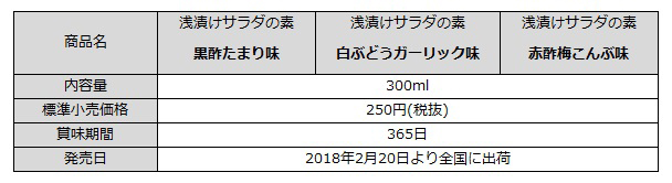 野菜を手軽においしく「浅漬けサラダの素」《黒酢たまり味》など3品新発売