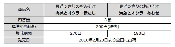イチビキ株式会社(本社:愛知県名古屋市、代表取締役社長:中村光一郎)は、ねばとろ食感の食材を中心に10種の具材を使用した「具どっさりのおみそ汁 海藻とオクラ」《赤だし》《あわせ》を、2018年2月20日より全国へ出荷いたします。