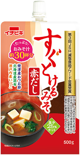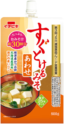 イチビキ株式会社(本社:愛知県名古屋市、代表取締役社長:中村光一郎)は、おいしさそのままに塩分を25%カットした みそ汁用の簡便みそ《すぐとけるみそ赤だし》《すぐとけるみそあわせ》を2019年2月下旬より全国へ出荷いたします。