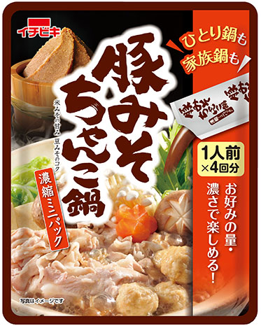 - イチビキのストレート鍋つゆシリーズの中で、赤から鍋に次いで人気の「豚みそちゃんこ鍋つゆ」を濃縮ミニパックとして発売します。