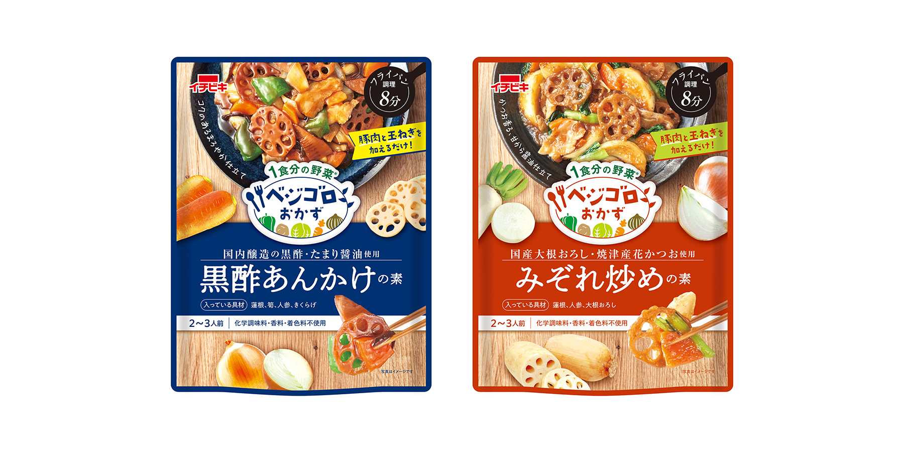 イチビキ株式会社(本社:愛知県名古屋市、代表取締役社長:中村光一郎)は、1食分の野菜が摂れるメニュー専用調味料『ベジゴロおかず』シリーズから、《黒酢あんかけの素》《みぞれ炒めの素》を新発売し、2021年8月20日(金)より全国へ出荷いたします。