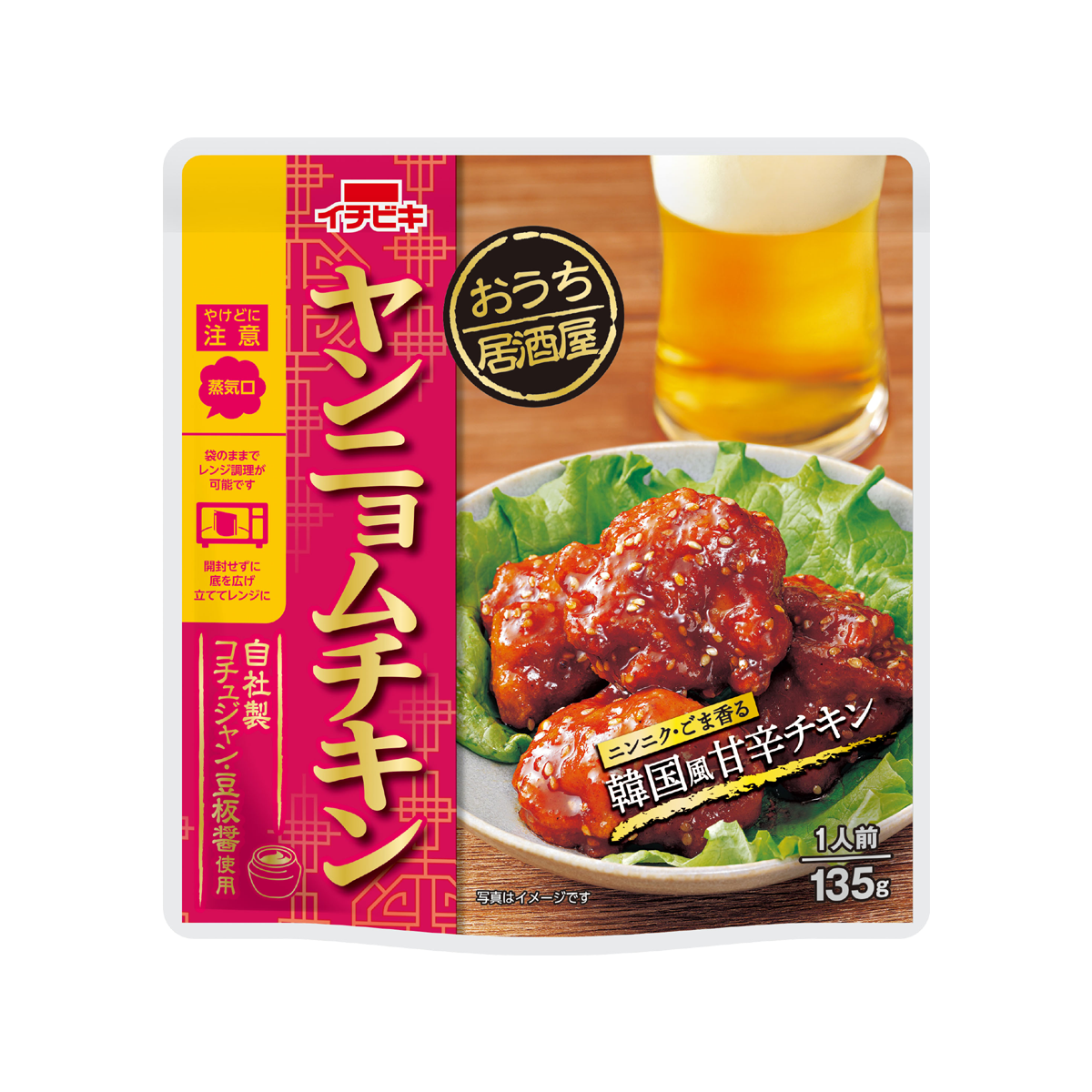 イチビキ株式会社(本社:愛知県名古屋市、代表取締役社長:中村光一郎)は、電子レンジでそのまま温められる常温ロングライフ惣菜『おうち居酒屋』シリーズから、自家製のコチュジャンと豆板醤を使った韓国風甘辛チキン《ヤンニョムチキン》を新発売し、2022年2月18日(金)より全国へ出荷いたします。