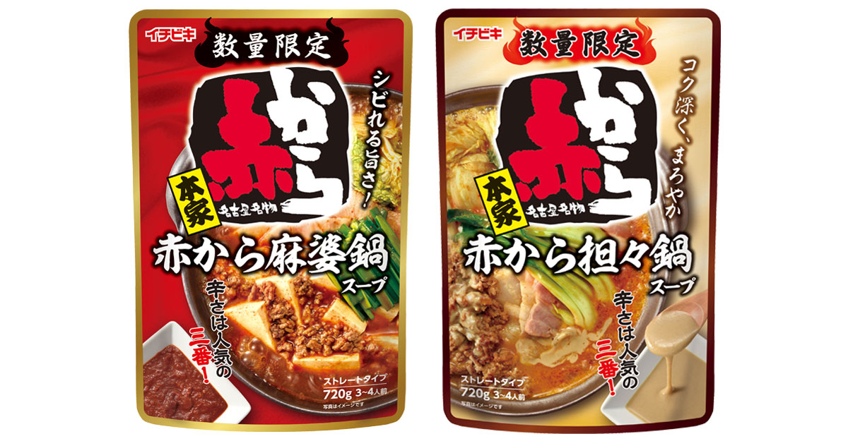 イチビキ株式会社(本社:愛知県名古屋市、代表取締役社長:中村光一郎)は、“辛さを極めたやみつきの旨さ”で大人気の「赤から」シリーズから、『ストレート赤から麻婆鍋スープ』『ストレート赤から担々鍋スープ』を、数量限定で2022年10月20日(木)より全国へ出荷いたします。
