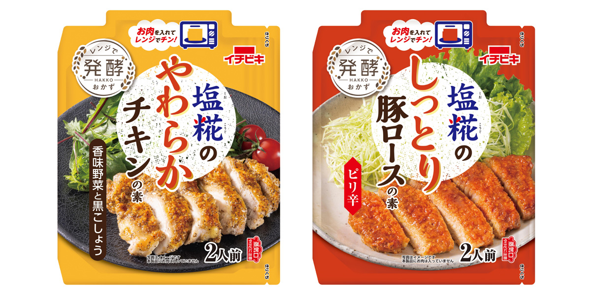 イチビキ株式会社(本社:愛知県名古屋市、代表取締役社長:中村光一郎)は、お肉を入れてレンジでチンするだけで、やわらかくしっとりした肉料理を作ることができる『塩糀のやわらかチキンの素 香味野菜と黒こしょう』『塩糀のしっとり豚ロースの素 ピリ辛』を新発売し、2023年2月20日(月)より全国へ出荷いたします。