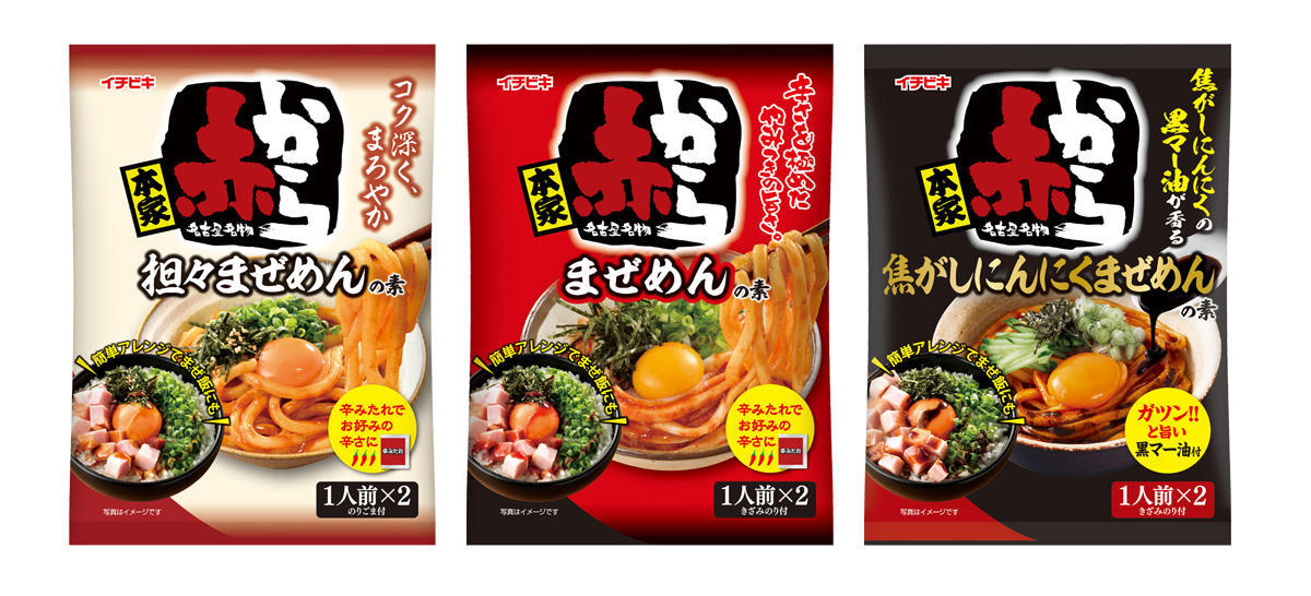 イチビキ株式会社(本社:愛知県名古屋市、代表取締役社長:中村光一郎)は、“辛さを極めたやみつきの旨さ”で大人気の「赤から」コラボ商品『赤からまぜめんの素』『黒からまぜめんの素』をリニューアルするとともに、『赤から担々まぜめんの素』を新発売し、2023年2月20日(月)より全国へ出荷いたします